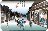 御油宿 本陣4脇本陣0旅籠62家数316人口1298[天保14年(1843)] 名前の由来は持統天皇が近くに来た時に油を献上したことからと伝わる。江戸時代の文献には五位、五井との記述もある。次の赤坂宿と16町(1.7km)しか離れていないため客引きも盛んで広重の絵の題材にもなっている。慶長6年(1601)宿場を定める朱印状は御油と赤坂が併記されており当初は2宿で1宿の扱いで後に独立した。明治に鉄道が敷設される際には御油・赤坂・藤川・岡崎・知立の旧5宿が反対したため海岸に沿って蒲郡を通る経路となり御油には戦火の災いもなく昔の町並が残っているが江戸時代の建物は少ない。宿場の資料、ジオラマなどが御油の松並木資料館に展示されている。 |
