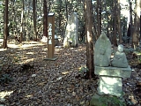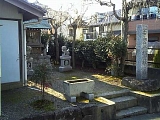 {左・寄}新四国88ヶ所霊場 ・力寿姫の墓 長福寺境内左の明治7年(1874)灯籠がある石段から上は明治39年に造られた新四国88ヶ所霊場巡りの道になっており弘法大師と観音の石像がセットで1番から並び辿っていくと山道を抜けて浄泉寺に通じ88番となる。1番から石段を少し登った右には弘法大師堂、明治5年の灯籠と可睡斎の札を祀る秋葉社がある。さらに上の石段途中には平安末期〜鎌倉前期の作とされる昭和53年市指定文化財の木造観音立像(高さ106cm)を安置する観音堂がある。石段から山道に入り39番と40番の間の右奥には「力寿姫の墓」茶色標柱、墓と伝えられる「上臈石」、五輪塔の1部がある。力寿姫は赤坂長者の娘で自害したとされるが今昔物語では大江定基が都から連れて来た後妻で三河で病で死んだとある。 |