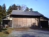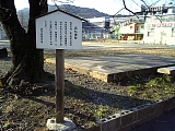 {右}問屋場跡(伝馬所) 長福寺入口から少し先の民家に鉄柱から下げられている小さな説明板がある。問屋場は間口6間(10.9m)奥行30間(56.4m)瓦葺の建物で人足30人馬10頭を用意していた。問屋役は本陣の彦十郎が兼務していたが文化年間(1804-17)より弥一左衛門に代わり幕末には弥一左衛門と五郎左衛門の2人がつとめていた。 |