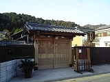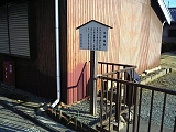 {右}御休処 よらまいかん(よらまい館) 斜め向かい。正法寺入口からは赤坂広場を隔てて隣。平成14年オープンした連子窓のある古い町屋を模した無人休憩所でテーブル、イス、自販機、パンフ置き場、文化財などの写真展示がある。2階は企画スペース。9時-17時、月休。建物の左前には赤坂町道路元標、広重の赤坂宿の絵がある。正面には「東海道赤坂宿 京江四十九里十六町 江戸江七十六里二十六町」と刻まれた石柱が立ち裏面に「東海道宿駅・伝馬制度制定四〇〇年記念事業 平成十三年 音羽町」とある。建物左のトイレ前には陣屋の牢にあったという小便石がある。横に溝があり牢の中で小便をすると外に流れるというもの。建物左の赤坂広場は運動広場で端にはすべり台、ブランコなど遊具もある。 |
