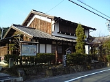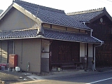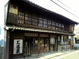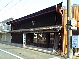 {右}尾崎屋 赤坂町紅里54 赤坂宿公園の隣にある連子格子の古い建物。明治元年(1868)創業で現在は民芸品を製造直売するおみやげ屋。軒先に行灯型の看板があり正面に「曲輪 民芸品 製造卸問屋」側面には「東海道五十三次 赤坂宿」とある。曲輪(まげわっぱ)とは檜・杉などの薄い板を円形に曲げ底を取り付けた食物容器や盆などのことで桧を使った曲輪は40年以上持つとも言われる。 |