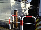 {左}高札場跡 十字路の先左の御油保育園(御油町河原畑26-25)のグラウンド角に説明立札がある。正徳元年(1711)に布令された毒薬に関する高札板が御油の松並木資料館に展示されおり毒薬、偽薬、偽金の売買を禁じている。 |