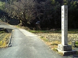 {左}赤坂十王堂跡 ・宮路山登山口 斜め向かいに「十王堂跡」茶色標柱がある。標柱上面には廃堂になり明治25年(1892)に向称寺に移された地蔵菩薩の写真が付いている。標柱の後ろには「宮路山周辺案内」のオレンジ色の地図付き説明板がありここから左に分岐する道は宮路山(362m)に通じる。道を渡った角には大正5年(1916)の石仏を安置した祠もある。宮路山は御油宿の名前の由来になった山で古道でもあり平安時代の更科日記にも山を通ったと書かれている。山越えルートは後に鎌倉街道になり十六夜日記には「紅葉の中に常緑樹が交じりまるで青地の錦のよう」と書かれている。鎌倉街道の詳細道筋は不明だが現在はハイキングコースが整備され山頂には持統天皇行幸を記念した大正6年(1917)建立の「宮路山聖跡」碑がある。 |