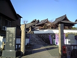 {右・寄}来迎山 誓願寺 [西山浄土宗] 鳴海町根古屋16 本町交差点を渡り右折した左。天正元年(1573)俊空の開山。本尊は阿弥陀如来。山門入って右の本堂の右前に市の保存樹に指定されているソテツがある。境内左には文化12年(1815)碓氷君徳政碑がある。天明2年(1782)から成海神社(鳴海町乙子山85)西側付近に置かれた尾張藩鳴海陣屋で文化10年(1813)代官となった碓氷清八郎重治を讃えた碑で永井荷風の先祖の儒学者・永井星渚の漢文が刻まれている。その左には文政2年(1819)徳本名号塔と横に小さな六字名号碑、前には元治元年(1864)手水石もある。東海道鳴海の宿11ヶ寺巡り第6番。敷地の北にあたる道路沿いには大師堂があり四國直傳弘法大師尾張88ヶ所霊場第2番。堂の左に「聖観世音菩薩」石柱、右におもかる地蔵もある。 | |