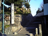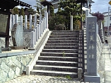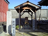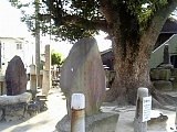{右}笠覆寺 宮本武蔵供養碑&笠寺千鳥塚 境内右の阿弥陀如来を安置する善光寺堂の左。供養碑「新免武蔵守玄信之碑」は武蔵の孫弟子の子孫と門弟が百年忌の延亨元年(1744)に建立。小次郎に勝った後に尾張を訪れ泊まったと言う笠寺の塔頭・東光院(笠寺町上新町47)には武蔵の自画像、自作木刀、左右両腕で書き分けたと言う「南無天満大自在天神」掛軸が残る。千鳥塚は名古屋の医師で俳人の丹羽以之が享保14年(1729)芭蕉36回忌に建立した石柱「星崎の 闇を見よとや 啼千鳥 芭蕉翁」で芭蕉はこの句を詠んだ貞享4年(1687)笠寺を訪れた。左へ行くと薬師如来を安置する医王殿(薬師堂)がありさらに左の墓地内には如意輪観音を安置する石祠の如意輪堂、墓地奥に中興阿願上人と開山善光上人の五輪塔、キリシタン灯籠がある。 | |