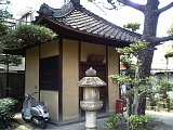 {右・寄}誓願寺 芭蕉堂 境内の左奥。安政5年(1858)永井荷風の曾祖父・永井士前とその門人が建立した間口奥行共1間半(2.7m)の木造瓦葺・土壁の堂で中には芭蕉翁座像(高さ38cm)が安置されている。誓願寺を菩提寺とする千代倉家の別荘があった細根山(現:鳴海町細根)の小山園に芭蕉が手植えした杉の木が台風で倒れたためその木材で宝暦年間(1751-63)に彫刻したもの。堂の前には市指定保存樹の黒松。堂の左奥には昭和52年市指定文化財の芭蕉供養塔があり元禄7年(1694)芭蕉が没した翌月の命日に鳴海の芭蕉門人で追悼句会を催した際に如意寺に建立され芭蕉堂が建てられた以降に移された。芭蕉の供養塔としては最古で高さ60cmの緑色の自然石で表面に「芭蕉翁」背面に没年月日が刻まれている。 | |