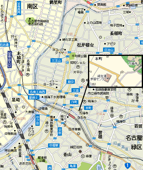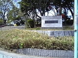 {右・寄}鳴海城址公園 圓道寺のさらに北を左折すると正面にある鳴海城の本丸跡。根古屋城とも言い応永年間(1394-1428)足利義満配下の安原備中守源宗範が築城。宗範の死後、一旦廃城になったが天文年間(1532-54)に織田信秀が修築し山口教継が居城したが信秀が没すると今川方に寝返った。永禄年間(1558-69)には今川方の岡部元信が守り桶狭間の戦いで義元が討たれた後も奮戦し義元の首を交換条件に城を明渡した。その後は信長家臣・佐久間信盛、信栄父子の城となり整備されたが天正8年(1590)父子が織田家を追放され天正18年(1590)頃に廃城になった。江戸時代の記録には東西75間半(137m)南北34間(62m)で堀跡が残るとある。現在、公園内にはブランコ、ベンチ、砂場、富士山を模した遊具などがある。 | |