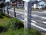 {左}「東海道」石柱 交差点で県道222号線から分岐し右にカーブ(右折)するとある。側面に「是より北よびつぎ」「是より東かさでら」とあり宿場制度400年記念に建立。ここから南区呼続となる。呼続は宮宿より渡し舟の出港を呼びついたことが由来と言われる。この付近には愛智助右衛門吉清(一色愛智入道)を城主とする東西55m南北110mの戸部一色城があった。文安3年(1446)と応仁2年(1468)に吉清が笠覆寺へ寄進した記録がある。手前の踏切付近に明治期まであった愛智塚は吉清一族のものとされる宝篋印塔、五輪塔で現在は笠覆寺墓地に移されている。 | |