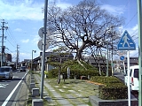 {右}笠寺一里塚(88) 少し先で右に道が分岐し2叉路になっておりその三角地帯に右塚と石柱、説明碑がある。市内に唯一残る一里塚で高さ3m直径10mの円丘上に高さ2.6mの榎が一本あり地表を這う根が塚全体を掴み上げている。市の都市景観保存樹に指定されておりうろが出来て樹勢が衰えていたのを平成6年に200万円で穴をふさぐ施術を行い蘇った。ムクノキが植えられていた左塚は大正時代に取り壊された。旧東海道は2叉路の左を進む。ここから先が江戸時代には笠寺の立場があった付近となり古くはないが格子の家が数軒ある。 | |