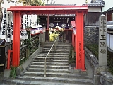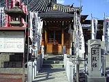 {右・寄}東福院 [真言宗智山派] 鳴海町花井町3 右折してしばらく進み右の間口の広い格子戸の旧家の先を右折していくと左にある。古くは鎌倉街道にあり寛永年間(1624-43)にこの地へ再建された。本尊は大日如来。山門は鳴海城の廃材を用いている。山門左には絵天井の残る観音堂があり小さな子宝観音ほか35の石像が安置されている。境内右には池があり弁才天が祀られている弁天堂がある。鳴海宿周辺の寺を巡る東海道鳴海の宿11ヶ寺巡り第4番。 | |