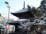 {右}天林山 笠覆寺(しょうふくじ)(笠寺)[真言宗智山派] 南区笠寺町上新町83 しばらく行くと池が現れ文政3年(1820)建立の山門(仁王門)がある。天平8年(736)夢のお告げを受けた善光上人が呼続の浜に漂着した霊木から本尊十一面観世音菩薩を刻み現在地の南方650mの観音塚(南区柏畠町2)天林山小松寺として開基。延長8年(930)藤原兼平と玉照姫夫妻が現在地に再興し寺号を改称した。嘉禎4年(1238)阿願が再々興し境内右の鐘楼にある尾張3名鐘の1つで県指定文化財の梵鐘を鋳造。この後も何度か荒廃、再興を繰り返し昭和に入り吉川政識が復興。境内右に政識和尚像がある。本堂は宝暦13年(1763)築。 8年に1度の開帳の本尊は笠寺観音と呼ばれ尾張4観音の1つで尾張西国33観音第15番札所、尾張33観音霊場第3番札所、東海圏新西国33観音第24番札所。