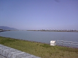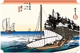 揖斐川(いびがわ) 宮宿から七里の渡しを渡ると伊勢国となり桑名宿に着く。桑名側の舟着場は揖斐川右岸に面しており岐阜県揖斐郡揖斐川町の冠山が水源で長さ121km流域面積1840平方km。舟着場の少し下流で長良川と合流し伊勢湾に注ぐ。揖斐川、長良川、木曽川の木曽3川は宝暦3年(1753)〜宝暦5年、明治20年(1887)〜明治44年など大規模な治水工事が行われ現在の姿なとなった。広重の桑名宿の絵は渡船が揖斐川から舟着場に入る様子を描いている。現在は舟着場跡と川の間には川口水門が設けられており平成15年の水門改築時には景観を考慮し高さを低くして周囲は石垣風に整備された。水門統合管理所も設置され上流の住吉水門、下流の三之丸水門と合わせ高潮を防ぐなど集中操作されている。 |