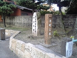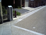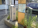 {右}吉津屋(よつや)見附跡 しばらく行くと駐車場角に説明プレート石柱、付近の地図、説明立札がある。ここを右折すると吉津屋門があり門の手前左に藩の役人が旅人を看視する番所(見附)があった。この付近は現在は鍛冶町だが江戸時代以前は七つ屋と呼ばれており江戸初期に吉津屋町の1部となって後に鍛冶を業とする人が多く住むようになったため吉津屋町から分離して鍛冶町となった。門の先は江戸時代以降も七ツ屋(七津屋)と呼ばれ吉津屋門は別名を鍛冶町門とも七ツ屋門とも呼ばれた。東海道は門をくぐるとすぐ左折、すぐ左折とUターンするように進むルートになっており現在も道は残っていて各曲り角には矢印付きの「東海道」石柱もある。 |
