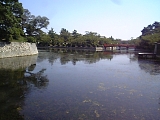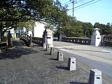 {左・寄}南大手橋 東海道はT字路になり右折するが左に行くと堀を渡る南大手橋がある。歴史を語る公園の三条大橋も左隣にある。江戸時代には橋は少し北側にあり橋を渡ると右折、左折する枡形の先に南大手門があって北大手門とともに桑名城の出入口の1つだった。戦前までは橋の右側の現在は内堀公園になっているところも堀だった。堀は公園のL字になっている部分でT字となって京町見附や立教小学校(吉之丸22-4)の敷地までも続いていたが終戦後に埋め立てられた。 |