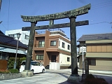 {右}泡洲崎(あわすざき)八幡社 光明寺に入る十字路を渡ると少し先。この付近は古くは町屋川の中洲で泡洲崎と称し少し北西の一色町に古くから鎮守として祀られていた。祭神は誉田別命。慶長の町割で川の流れが変わると光明寺の北に移転、明治41年(1908)春日神社に合祀されたが昭和25年新町の氏神として分祀され現在地に再建された。境内右に合祀されてた間に旧地に置かれていた大正7年(1918)建立の「泡洲崎八幡社舊蹟」石柱がある。鳥居は平成14年、灯籠は大正13年など。鳥居左には天保13年(1842)新町北端に建立され戦後に移された道標「右 きゃう いせみち 左 ふなばみち」がある。町屋川、大山田川、揖斐川に囲まれた桑名には他にも加良洲崎(からすざき)、自凝洲崎(おのころすざき)と称する中洲があった。 |