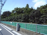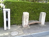 柿の2叉路 しばらく進み右に雑貨屋・柳屋(柿2000)があるところで2叉路となり東海道は左折するように左に行く。この付近は柿と言う珍しい地名で明治時代から農業地帯として栄え大正11年(1922)に矢野タオル(現:アサヒタオル)が創業してからは朝明川の良質の水を利用したタオル製造も盛んとなった。しばらく行くと右にカーブし少し先で両側に水路が沿うようになる。ゆるやかな上り坂になると両側が桜並木となり途中左右のガードレール外に砂利が敷かれ木製ベンチが3つ置かれた休憩場所がある。 |