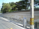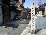 {右}広瀬鋳物工場跡 右折すると旧東海道は鍋屋町に入る。しばらく行くと民家の立派な石垣塀の前に説明プレート石柱がある。江戸初期に桑名藩主本多忠勝が員弁郡大泉村から鋳物師の廣瀬(広瀬)与左衛門を招きここを鋳物工場とした。文政9年(1826)にはシーボルトも工場見学している。工場では梵鐘の他に鍋などの日用品も作り付近は鍋屋町と呼ばれた。本統寺[真宗大谷派](北寺町47)にある親鸞聖人像を昭和12年(1937)に寄贈した大阪の実業家広瀬精一は広瀬鋳物の分家の子孫。聖人像は6体作られ桑名の他、京都、新潟、東京、大阪、広島に置かれ広島の像は原爆で被災後の昭和30年にニューヨーク本願寺に移された。鋳物製品は明治以降には桑名の特産品にもなり昭和16年には50社の鋳物工場があった。 |