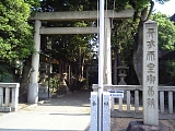 {右}城南神社 安永816 工場敷地を過ぎるとある。古くは神明宮と称し明治41年(1908)近隣の神社を合祀し当時の村名(城南村)から城南神社となった。主祭神は天照大御神で豊受比賣命ほか5柱を配祀。伊勢神宮が創建される際に各地を転々とした倭姫命が伊勢に着く前にこの地に仮座したと伝わることから神宮と関係が深く古来より式年御遷宮には内宮一ノ鳥居や古殿舎の1部が下賜される。入口左の大正3年(1914)神社名石柱は神宮大宮司・三室戸和光揮毫。鳥居前右には昭和5年(1930)「皇大神宮一ノ鳥居御下賜」石碑、参道に平成6年「下賜記念」灯籠、社殿右に神宮少宮司・藤岡重孝揮毫の平成10年「天照大御神御遷幸旧蹟」石碑がある。境内右の手水石は嘉永4年(1851)。参道右の乙石稲荷前には嘉永6年灯籠。 |