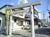 {右}神戸岡(ごうどおか)神社 左折し少し行くとある小さな神社。創建時期は不詳だが昔この付近は伊勢神宮の支配地で桑名神戸(かんべ)と呼んだことに関係するとされる。古くは街道の反対側にあり明治29年(1896)に立坂神社に合祀されたが昭和35年(1960)現在地に再建された。鳥居左に合祀されてた間に旧地に置かれていた昭和2年(1927)建立の「神戸岡神社舊跡」石碑がある。社殿は小さな祠。木製鳥居は昭和60年。灯籠は昭和58年、狛犬は平成14年。境内左に昭和28年建立の戦没勇士碑がある。神社の手前の向かいには福江町祭車庫があり春日神社の石取祭の福江町祭車(昭和28年製作)を保管している。神社から少し先で地名が大福となる。 |