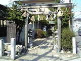 {右}天武天皇社 東鍋屋町89 少し先にある。入口右に明治35年(1902)松平定敬揮毫の「天武天皇御舊跡」石柱。壬申の乱(672)で大海人皇子と后の讃良皇女が桑名に駐泊した記念に後に創建された。皇子は桑名から美濃国不破(現:岐阜県不破郡)に向かい兵を集め近江の大友皇子に勝利し即位し天武天皇となり讃良皇女は後に持統天皇となった。祭神は天武天皇、持統天皇、第1皇子の高市皇子で天武天皇を祭祀する全国唯一の神社。元は新屋敷にあり寛永12年(1635)新屋敷を武家屋敷としたため鍋屋町南側に移り天和年間(1681-84)北側の現在地に移転。戦災で焼失し再建。灯籠は文政4年(1821)天保7年(1836)など。手水石は文化12年(1815)。昭和41年市指定文化財の嘉永7年(1854)「備前介藤原宗次」銘の刀を所蔵。 |
