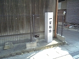 {左}縄生(なお)一里塚跡(97) 古い家並みが続きしばらく行くと民家の板壁前に「一里塚跡」石柱がある。江戸時代に縄生村にあった一里塚で両側とも榎が植えられていたが現在は塚はなく石柱のみがある。少し先右には「みえ歴史街道 東海道」標示があり右折すると北東700mにある平成19年県指定史跡の縄生廃寺へ向かう道となる。白鳳時代創建とされる寺院跡の縄生廃寺は昭和61年の発掘調査によってその塔跡が明らかになり朝日町歴史博物館にも関連展示があり塔心礎から出土した舎利容器は平成元年に国重要文化財に指定されている。 |