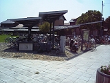 {左・寄}朝日町資料館(旧:朝日村役場) 小向872 しばらく進み右に「みえ歴史街道 東海道」標示と「御厨 小向神社」石柱がある変形十字路を左折して行くと左にある。大正5年(1916)村役場として建てられ昭和29年(1954)町制施行後は町役場として昭和39年まで使われた。建坪64坪(211平方m)で建築費は1866円。木造2階建桟瓦葺寄棟造で懸魚付切妻造の玄関、1階に事務室、2階に議場があった。現在は建築面積135平方mで昭和53年から農具や日常品など民俗資料の展示館となり平成12年に国登録有形文化財となった。庭には「右 こうさく道 左 豊田一色」など服部泰次郎建立の道標3基がある。開館は水土のみ。10時-16時、無料。小向(おぶけ)神社(小向1573-3)は石柱を右折し300m先の近鉄名古屋線を渡り少し先を右折して行くとある。 |