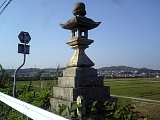 {右・寄}多賀大社常夜燈 並木を抜け伊勢湾岸道の高架手前の柿交差点を右折すると右にある。朝明川の堤に弘化3年(1846)に建立されたが昭和6年(1931)にここに移された。「多賀大社常夜燈」「壽命長久」「五穀成就」と刻まれている。横には小さな昭和46年建立「交通安全道路改修記念」石柱もある。多賀大社(滋賀県犬上郡多賀町多賀604)は室町時代から広く庶民にも信仰され「お伊勢七度、熊野へ三度、お多賀さまへは月参り」「お伊勢参らばお多賀へ参れ、お伊勢お多賀の子でござる」などと言われた。江戸時代には常夜燈付近に3軒の茶店があり間宿・富田の客引きがここまで来ていたと言う。 |