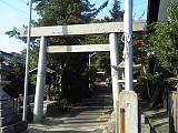 {右・寄}御厨神明社 四日市市松寺3-6-33 しばらく行くと昭和3年(1928)神社名石柱があり右折した右に昭和6年鳥居がある。祭神は豊受姫命など。参道には昭和3年御大典記念の灯籠などが並ぶ。社殿前灯籠や狛犬は昭和6年。境内左に「山神」石碑がありその左には明治13年(1880)手水石がある。社殿左には松寺連合自治会第2集会所もある。 |