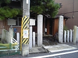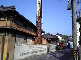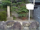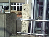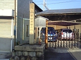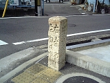 {右・寄}「行啓記念道路」石柱 その先の十字路を過ぎ次の角を右折したすぐ右に石柱と説明立札がある。皇太子時代の大正天皇(当時は東宮嘉仁親王)がこの道を通った記念碑。明治43年(1910)三重、愛知を行啓する一環で11月16日に四日市を訪れた皇太子は富田駅に着くとこの道を通り現在の四日市高校(富田4-1-43)である明治32年(1899)創立の県立第二中学校を訪問した。授業や成績品陳列室のほか校庭で4年生と5年生の中隊分列行進も見学し学校では21発の祝砲を上げ職員、生徒、近隣の住民が歓迎したと言う。同日は他にも築港中の四日市港も視察している。現在の石柱は昭和2年(1927)に再建されたもの。その先の角を左折すると突当りが明治27年(1894)開業のJR富田駅。 |