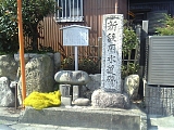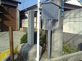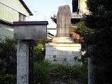 {左}佐藤輝子頌徳碑・松寺の立場跡 少し先に石垣の土台に乗った大正7年(1918)建立の碑がある。嘉永年間(1848-54)に庄屋として活躍した佐藤庄九郎の娘・輝子は弘化3年(1846)に生まれ25歳で夫と死別してから大正6年に72才で没するまでこの地で裁縫学校を開いていたと言う。碑の左前には平成16年設置の「旧東海道 伊勢の国 松寺の立場跡」説明板もある。この付近は松寺の立場があり間宿・富田にかけて焼蛤を売る茶店が何軒もあった。今は立場の面影はなく近年まであった大きな榎もなくなっている。 |