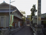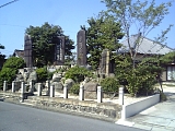 {右}初野山摂護殿 光明寺 [浄土真宗本願寺派] 羽津町7-26 神社入口から少し先。元は真言宗で大矢知にあったが出家した羽津城主・赤堀宗昌(盛義)が住職となり享禄年間(1528-31)現在地に移転し天正年間(1573-93)改宗した。平成8年本堂、山門、鐘楼、書院を改修し境内左に文久3年(1863)鬼瓦がある。境内入って左に鐘楼があり供出を拒んだ明治43年(1910)鋳造の梵鐘が現存する。鐘楼前には昭和59年親鸞聖人立像、境内左には蔵もある。入口右には昭和3年(1928)建立「八十宮御遺跡」石柱がある。八十宮(やそのみや)は生後1ヵ月で7代将軍家継の婚約者となった霊元天皇の第13皇女・吉子内親王(よしこないしんのう)の幼称。明治維新で敗れ裁きを待つ桑名藩士たちを書いた菊池寛の短編小説「乱世」はこの寺が舞台となっている。 |