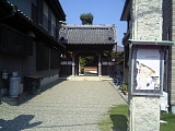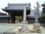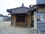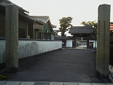 {右}薬師寺 [浄土宗] 南富田町10-32 少し先。前には忠魂碑などの大きな石碑群4基がある。大同年間(806-10)付近で疫病が流行したが弘法大師が彫った薬師如来のおかげで平癒したためその薬師如来を堂を建て安置したのが起こり。室町時代初期に茂福城主・朝倉下総守盈盛が菩提寺として茂福村に大伽藍を建立し報乳山洪恩寺としたが永禄10年(1567)信長の伊勢侵攻で焼失。この時、本尊は自ら門前の松まで逃れたと伝わる。翌年現在地に草庵が建てられ本尊を安置し桑名の十念寺の芳誉上人が浄土宗として再建した。現在は尼寺で薬師如来像は秘仏となっており山門左前には小さいが松もある。山門左には地蔵3体が安置された祠もあり「東海道のお地蔵さん」と呼ばれている。境内には本堂、庫裏のみ。 |