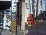 {右}服部泰次郎の道標 東海道は少し先を右折しヤマシタ洋品店(富田3-5-7)と司クリーニング(富田3-4-12)の間の中町通りに入る。角左の電柱に「右東海道→」標示。その先右の善快堂薬局(富田3-4-1)先の十字路角に現:四日市高校の県立第二中学校(富田中学校)とその先1.5kmの三重郡大矢知村(現:四日市市大矢知町)への道標「左 大矢知中学校」がある。建立した服部泰次郎は安政元年(1854)三重郡小杉村(現:四日市市小杉町)に生まれ明治に入り雑貨などの行商をしていたが29歳で米問屋を始め日清日露戦争時には軍用米の指定業者、後には国産米を海外に輸出し成功。行商時代に道を間違え苦労したことから晩年の大正8年(1919)から翌年没するまで地元産花崗岩(菰野石)製の道標を近隣市町村に多数建立した。 |