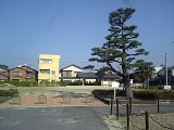 {右}明治天皇御小憩所跡 富田1-24-49 その先の富田小学校の門左に「明治天皇御小憩所跡」説明板、「史蹟 明治天皇富田御小憩所阯」石柱、近衛文麿揮毫で昭和40年に(1965)富田地区市民センターから移された「明治天皇御駐輦跡」石碑がある。明治天皇は明治元年(1868)9月25日東幸の際に広瀬五郎兵衛邸で休憩し焼蛤を食べたとされ同年の京都へ帰る12月19日、翌年の東京遷都の3月15日、明治13年陸軍大演習で三重に来た7月3日にも休憩した。広瀬邸はここかから手前の市民センターにかけてあり「酒五」という屋号で幕末から旅籠を営んでいた。旅籠の前は酒屋だったため酒屋五郎兵衛とも呼ばれた。説明板前には平成13年建立の「東海道」石柱。門手前には小学校の生徒が作った東海道の紹介立札3枚もある。 |
