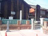 {右}東洋紡績道標 富田1-24-47 1軒おいた右に木製鳥居と「南町集会所」の札が掛かった堂がありその先の富田地区市民センターの門右に大正6年(1917)建立の道標がある。「右」の下に「富田一色」「東洋紡績」「川越村」が並んで刻まれその下に「道」とある。東洋紡績富田工場は現在のイオン四日市北ショッピングセンター(富州原町221-2)がある一帯に大正5年に完成し最盛期は20万平方mの敷地で5千人以上が働いていたが平成9年に閉鎖された。敷地南端に現存する大正6年築の旧:原綿倉庫は平成12年国登録有形文化財で内部は飲食店となっている。市民センターの門の先の低いレンガ塀の向こう側には木で枠を作った高札風の「東海道総合案内図」があり富田から采女までの東海道地図が掲載されている。 |