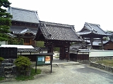 {左・寄}成徳山 善教寺 [真宗高田派] 南富田町7-3 しばらく進み十四川手前を川沿いに左折した左。海戸尻と呼ばれたこの地区にあった海戸尻道場が起こり。開基は義孝で寛正年間(1460-65)高田派10世真慧が伊勢に布教に来た際に高田派となり元和3年(1617)寺号を善教寺とし正徳元年(1711)山号を成徳山とした。明治42年(1909)築の山門左に昭和51年建立の寺名石碑と地蔵堂、山門入って右に鐘楼。2層式屋根の現本堂は昭和10年(1935)築、本堂右の庫裏は文政年間(1818-29)築で近年改築された。境内左の昭和48年築の本尊収蔵庫(奉安殿)には仁治2年(1241)作で秘仏の木造阿弥陀如来立像(高さ79cm)があり昭和26年に胎内から発見された願主・藤原実重が摺った715体の摺仏、般若心経、日記等の文書と共に昭和34年指定国重要文化財。 |