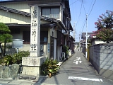 {右}松栄山 蓮證寺(蓮証寺) [浄土真宗本願寺派] 松寺3-3-28 少し先。寛文年間(1661-72)に祐顕が寺として創建したとされ本堂が200年ほど前に建てられたと伝わる。松寺の地名はこの寺の山号の松栄山が由来とも言われる。本尊は阿弥陀如来。平成6年再建の山門の左にある鐘楼は平成5年の再建。梵鐘は戦争で供出され再鋳されたもの。他に境内には本堂、庫裏、灯籠1基がある。 |