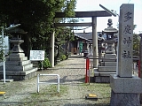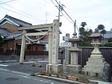 {左・寄}鳥出神社 富田2-16-4 正泉寺正面を左折せずに直進すると左。延喜式神名帳記載の古社。「鳥出」は死して白鳥となった日本武尊がこの地に降り再び飛び立った伝説に由来し地名の富田は「飛んだ」が訛ったと伝わる。祭神は日本武尊と事代主命。明治40年(1907)頃に近隣の数社を合祀し他に天照大神、菅原道真など10柱を配祀。現本殿は昭和4年(1929)移築した伊勢神宮別宮の月読宮の建物で木製大鳥居は平成7年拝領した内宮二之鳥居。大きな神社名柱は大正5年(1916)神宮大宮司・三室戸和光書。境内は広く右に戦役記念碑、人形筆塚。社殿左に神楽殿、右に小祠が3つある境内社、その右に稲荷社。稲荷社手前左に水神社、手前右に神馬舎、赤鳥居の手前右に龍神社。鯨船神事は平成9年国指定無形民俗文化財。 |