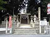 {右・寄}志氐神社 大宮町14-6 入口を右折し近鉄名古屋線を渡りさらに先が境内。垂仁天皇の代の創建で高野御前、江戸時代は高御前社と称した。祭神は気吹戸主神ほか11柱。 明治40年(1907)近隣の白須賀の神明杜と住吉社、八幡の八幡神社、別名の長谷神杜と荒神社、各字の山之神神杜を合祀。境内は昭和30年市指定史跡の4世紀末の前方後円墳でもあり現在は社殿左に後円部の1部が残るのみで昭和30年「志氐神社境内古墳」石柱、昭和48年説明碑がある。境内中央の昭和3年(1928)万葉歌碑は丹比屋主真人が天平12年(740)聖武天皇に随行しここに詣でた際に詠んだ歌。他に妻恋稲荷神社、橿原神宮遥拝所、皇大神宮遥拝所、明治神宮遥拝所、戦艦陸奥砲台破片、参集殿(結婚式場)、傍示石「従是北桑名領」など。 |