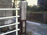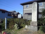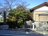 {右}極楽山観音堂跡 しばらく行くと白いフェンスが張られている一段高い空地の奥に鬼瓦や瓦を使用した平成9年建立のモニュメントがある。古くからあった観音堂は永禄11年(1568)信長の伊勢侵攻で焼失。延宝5年(1677)各誉が建立し阿弥陀如来を安置した地福寺常念仏堂に元禄12年(1699)江戸の鈴木市朗衛門が西国33観音を寄進し観音堂とし宝永3年(1706)寂純が再建、天保8年(1837)情房が中興したが平成7年に老朽化のために取り壊した。モニュメント右横には昭和15年(1940)建立の戦死した地福寺33世の碑。手前右には明治13年(1880)7月13日陸軍大演習の際に休憩したと言う「明治天皇御小休所」碑、昭和10年竣工の旧:和泉橋の親柱「和泉橋」、戦没者碑がある。 |