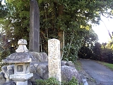{右}「山神」石碑&「従是東神戸領」傍示石 少し行くと小さな川を渡る手前にある。自然石に「山神」と刻まれた石碑の左に灯籠、右に文化10年(1813)手水石がある。石碑は江戸時代からここにあったもの。木材、薪、山菜などの恵みをもたらす山には古来より神が宿るとされていたが春には農村にも神が降りて来るとして山以外でも「山神」が信仰された。少し離れて傍示石があり神戸藩領だった汲川原村と亀山藩領だった中冨田村との境に建てられていたものがここに移設されている。茶色に変色しており3面に「従是東神戸領」と刻まれているが1面の「是」と1面の「領」の字は削られている。 |