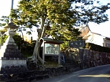 {右}熊野権現社 石上寺の本堂よりさらに石段を登った上にある。大和国布留郷(現:奈良県天理市)の紀真龍(きのまたつ)が石上神宮(天理市布留町384)の夢告によりこの地へ移住し那智山熊野権現(現:熊野那智大社)を勧請し延暦15年(796)に創建。和泉式部が訪れたとも伝わる。石段途中には元治2年(1865)「仁王護国般若経石塚」石柱。境内の灯籠は延享2年(1745)、狛犬は昭和60年。社殿右の小祠前の灯籠は宝暦10年(1760)。社殿右前に信徒会館、左前に昭和44年梵鐘がある鐘楼。鐘楼左より6地蔵が並ぶ道を社殿の裏に抜けると駐車場の向こうに近代的な建物の弥陀堂がある。寺・神社敷地には四国88ヶ所霊場の石仏の祠も点在。寺には昭和31年市指定文化財の鎌倉時代の熊野山大権現扁額も現存する。 |