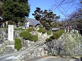 {右・寄}法性山 常楽寺 [真宗佛光寺派] 少し先の変形十字路右奥にある。 永正年間(1504-20)の創建で本尊は阿弥陀如来。明和8年(1771)安永2年(1773)と豪雨で被災し明治24年(1897)には地震で倒壊した。昭和46年築の山門を入って左に昭和41年築の鐘楼があり同年鋳造の梵鐘がある。平成3年に本堂を新築した。 |