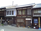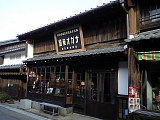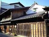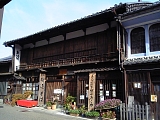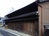 {左}田中屋(田中家) 少し進むとまた同じ名字の田中家がある。代々庄太夫を名乗り江戸時代から醤油醸造業を営んでおり文久3年(1863)の記録にも田中屋庄太夫とある。平成元年に醸造をやめ販売のみとなったが平成3年に廃業。総格子の建物は大正初期の築で地元の名工・佐吉が7年がかりで建てた。間口は15間半(28m)と広く内部には30尺(9m)の欅の通し柱がある。裏には醸造用の煉瓦造の麹部屋や煙突などもある。 |