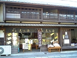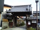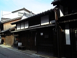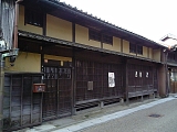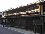 {右}南禅寺(井口家) 少し先にある。「南禅寺」は屋号で豆腐料理を名物とする料亭だった。建物は文久年間(1861-65)の築とされ1階には連子格子があり2階は塗籠で格子窓になっている。文久3年の記録には南禅寺の記載はなく観音院から8軒おいた先に宿の出口となる見附土居があった。 |