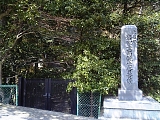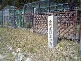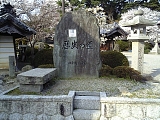 {左・寄}地蔵院 藤原定家歌碑 鐘楼の背後にある倶了庵(くりょうあん)前を通り庭園奥の築山を登ると歌碑と説明立札がある。中納言・藤原定家が勅使の供としてこの寺を訪れた際に詠んだと言う「蝦夷過ぎぬ これや鈴鹿の 関ならん ふりすてがたき 花のかげかな」歌碑で歌は新後撰和歌集にも収録されている。「花」は蝦夷桜のこととされ蝦夷から桜の枝を杖にして参詣に来た人がここに杖を挿したまま帰ったところ根付いたと伝わる。東海道名所図会にもこの地に「えぞ桜」と書かれており現在も築山には小さいが桜の木がある。倶了庵横の庫裏は延享4年(1747)建立で寛政2年(1790)増築された客殿に明治天皇が明治13年(1880)巡幸の際に休憩した。鐘楼右には昭和14年(1939)建立「明治天皇關行在所」石柱もある。 |