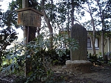 {左}鈴鹿馬子唄会館 関町沓掛234 坂の途中にある。鈴鹿馬子唄や坂下宿についての資料を展示。鈴鹿馬子唄は鈴鹿峠で旅人を乗せた馬を引く馬子が鈴の音に合わせて口ずさんだのが発祥で1番から9番まであり馬子唄としては日本最南とされる。宿場ならではの情緒的なものを唄っているのが特徴で平成16年市指定無形文化財。文献では宝永元年(1704)「落葉集」に見られ宝永5年(1708)大阪竹本座で上演された近松門左衛門作の浄瑠璃「丹波与作待夜の小室節」にも登場し全国的に知られた。入って右の黒板に馬子唄の譜面が書かれている。建物は平成7年築で発表会などに使用されるホール部分は五角形と三角形を組み合わせた多球面型。会議室もある。9時-17時、月休、無料。建物左には昭和55年建立の戦没者慰霊碑もある。 |