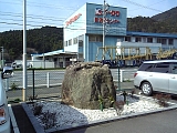 {右}転び石 市瀬交差点を過ぎると左のオークワ関流通センター(関町市瀬1-1)手前に「東海道 関宿」の大きな看板。その向かいの駐車場内の国道側に直径1mほどの石がある。何度片付けても街道に転がり出てしまうと伝わる伝説の石で鈴鹿川に落ちても自力で戻ったという話もある。鈴鹿峠から当時畑だったこの地に転がり落ちてきたとされ「弁慶ころがし」とも呼ばれる。夜になると不気味な音を立て弘法大師が供養したところ静かになったと言う小夜之中山の夜泣石と似た話も伝わる。駐車場の右側の斜面の林の中にも同じく転び石と伝わる同じくらいの大きさの別の石がある。 |
