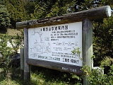 {右}観音山歩道案内図 緩やかな坂を上り10軒ほどの楢木集落を過ぎしばらく行くと左に東海自然歩道の方向・距離標示木柱がある。東海自然歩道は東京の「明治の森高尾国定公園」から大阪の「明治の森箕面国定公園」の間の自然・文化財を巡る計1697.2km の散策路で左折して行けば加太、柘植方面へ、直進すると旧東海道と合流し鈴鹿峠方面へ向かう。その先左の沓掛地区浄化センター(関町沓掛588-1)を過ぎると右に観音山歩道案内図がある。観音山歩道は観音山公園近くの国民宿舎関ロッジ(関町新所1574-1)を起点に観音山と関富士の間を抜け筆捨山の北を通りここで旧東海道と合流する4.4kmの自然探勝歩道。向かいには子供の木像と「東海道松並木復元 坂下宿第二号」木柱があるが隣の松は枯れている。 |