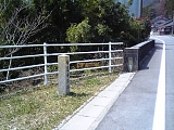 消滅した東海道 その先の市瀬橋(いちのせばし)手前で東海道は国道1号から右に分岐する。橋手前右の川沿いのガードレールに矢印標示。分岐して少し先で左に分岐する土手道が東海道の名残だがその先は消滅しているためそのまま舗装道をまっすぐ進み鈴鹿川を昭和54年竣工の市瀬橋(いちせばし)で渡る。対岸にも消滅した東海道から続く名残が見られる。橋を渡って少し先の突当りを右折し立場だった市瀬の集落を進み少し上って国道1号を渡る。国道に出る手前右には「氏子中」と刻まれた自然石の大正9年(1920)常夜燈がある。 |
